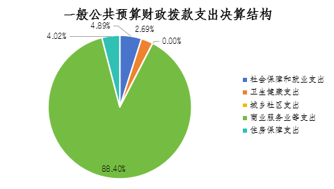 2024年一般公共預(yù)算財(cái)政撥款支出978.67萬(wàn)元,主要用于以下方面:社會(huì)保障和就業(yè)支出47.86萬(wàn)元,占總支出的4.89%;衛(wèi)生健康支出26.29萬(wàn)元,占總支出的2.69%;商業(yè)服務(wù)業(yè)等支出865.13萬(wàn)元,占總支出的88.40%;住房保障支出39.39萬(wàn)元,占總支出的4.02%。