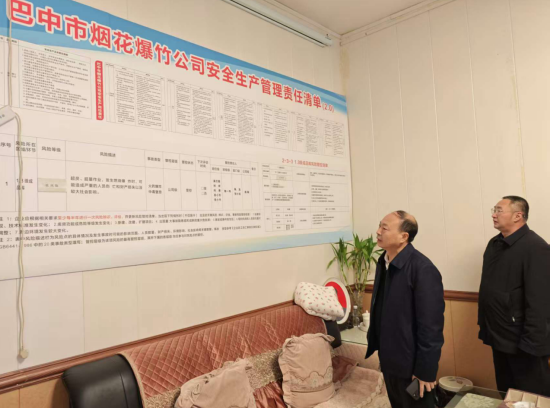 在市煙花爆竹公司,廖爵祿深入倉儲庫房、展示中心,仔細核查消防設(shè)施配備、安全管理制度落實、從業(yè)人員安全培訓(xùn)等情況。他強調(diào),煙花爆竹行業(yè)安全風(fēng)險高、責(zé)任重大,公司要始終把安全生產(chǎn)放在首位,切實強化安全意識,嚴格落實主體責(zé)任,常態(tài)化開展安全隱患排查整治,完善應(yīng)急處置預(yù)案,堅決落實好“工作+安全”要求,守住安全生產(chǎn)底線,確保行業(yè)安全平穩(wěn)運行。